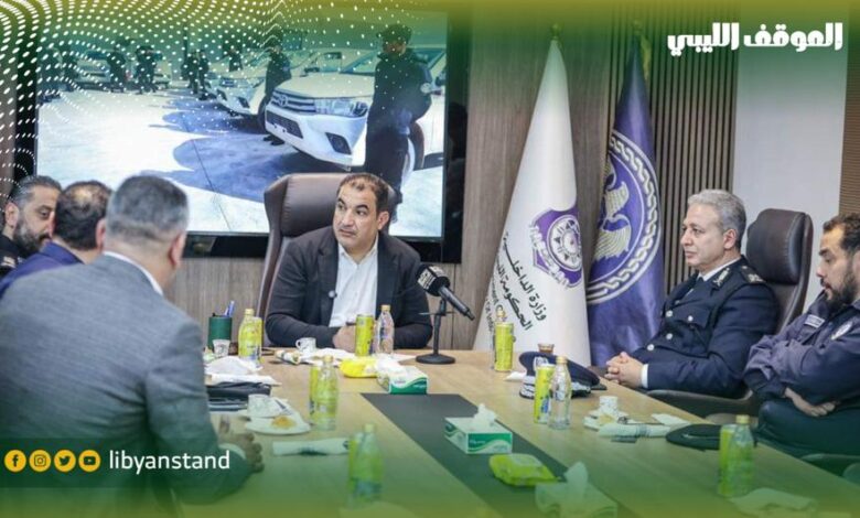 عقدَ وزير الداخلية اللواء عصام أبوزريبة، صباح اليوم الأربعاء، اجتماعًا هامًا مع رئيس جهاز البحث الجنائي اللواء صلاح هويدي، ورئيس جهاز الهجرة غير الشرعية اللواء نوري الساعدي، ومساعد رئيس مصلحة الجوازات بالمنطقة الشرقية اللواء فيصل المحجوب ، ورئيس فرع مباحث جوازات بنغازي، العميد سالم المغيربي، ومندوب عن وزارة العمل سالم القذافي.