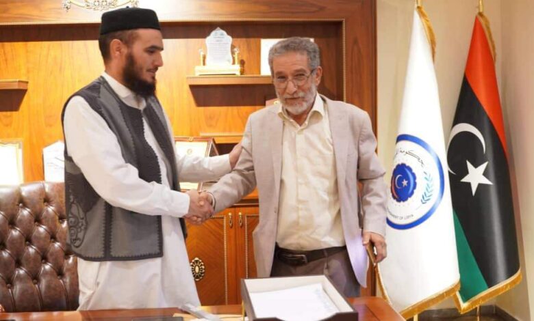 في إطار تعزيز التعاون بين مؤسسات الدولة، استقبل رئيس الهيئة العامة للأوقاف والشؤون الإسلامية، عاطف عبد الواحد العَبيدي، مديرَ إدارة المطبوعات بوزارة الثقافة أنور الشويهدي، في مقر الهيئة بمدينة بنغازي.