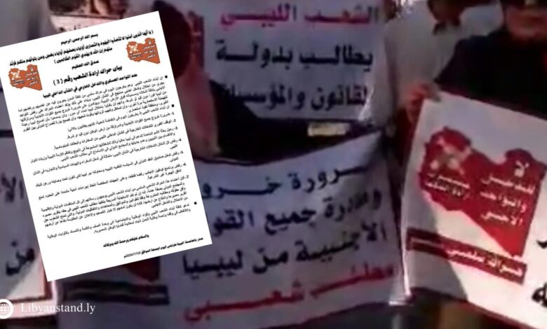 7.توجيه رسالة إلى المجتمع الدولي والمنظمات الدولية والإقليمية بضرورة الاستجابة لمطالب الشعب الليبي في تقرير مصيره، مهددين بالتصعيد والمقاومة في حال عدم الاستجابة.
