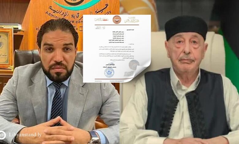 أصدر رئيس مجلس النواب، عقيلة صالح، خطابًا رسميًا إلى رئيس المجلس الأعلى للقضاء، والنائب العام، ورئيس الحكومة المكلفة، ورئيس ديوان المحاسبة، ورئيس الهيئة الوطنية لمكافحة الفساد، ومحافظ مصرف ليبيا المركزي، يؤكد فيه استمرار تكليف عبدالله قادربوه برئاسة هيئة الرقابة الإدارية بالمنطقة الغربية حتى يتم التوصل إلى اتفاق مع المجلس الأعلى للدولة بشأن توحيد الأجهزة الرقابية.
