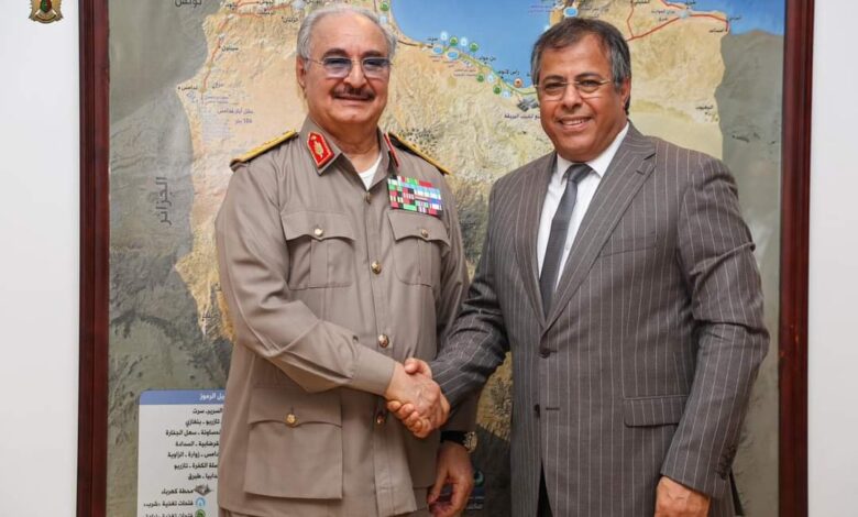 استقبل القائد العام للقوات المُسلحة المُشير خليفة حفتر بمقرّ القيادة العامة، رئيس مجلس الإدارة بجهاز تنفيذ وإدارة مشروع النهر الصناعي الدكتور سعد بومطاري.