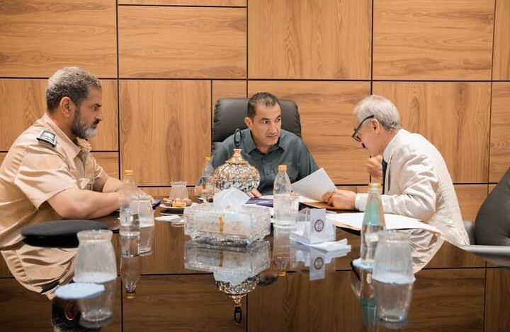 اجتمع وزير الداخلية، اللواء عصام أبوزريبة، مع مدير المعهد العالي للضباط، اللواء د. سعد البوري، بحضور مدير مكتب حقوق الإنسان بالوزارة، اللواء جلال الزايدي