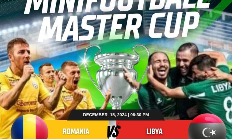 وأوضحت صفحة الاتحاد الليبي للميني فوتبول عبر «فيسبوك» أن مباراة المنتخب الليبي أمام نظيره الروماني في «الماستر كب» ستقام يوم 15 ديسمبر المقبل في تمام السادسة والنصف مساء.