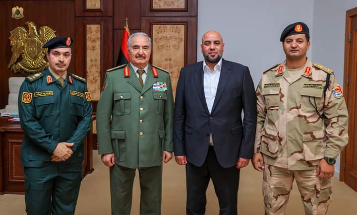التقى القائد العام للقوات المُسلحة، المُشير خليفة حفتر، برئيس الجهاز الوطني للتنمية، الدكتور جبريل البدري، بحضور رئيس أركان الوحدات الأمنية، وذلك في مكتبه بمقر القيادة العامة.