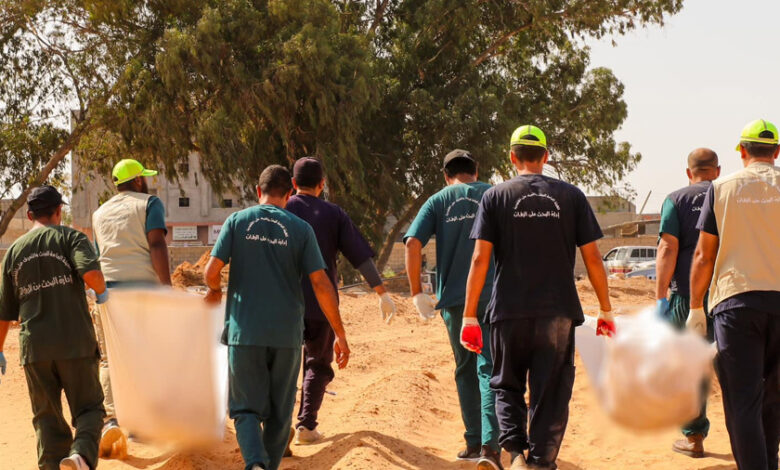 وتواصل فرق الهيئة أعمالها بموقع المقبرة منذ الإعلان عن اكتشافها بمنطقة بئر الأسطى ميلاد في تاجوراء يوم 20 أكتوبر الجاري، حيث تعمل الهيئة على أخذ عينات الحمض النووي قبل إعادة دفن تلك الجثامين بالتعاون مع النيابة العامة.