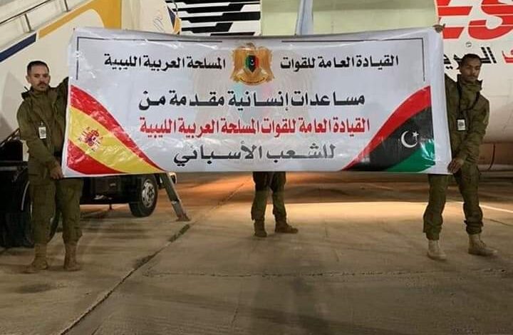القوات المسلحة العربية الليبية ترسل طائرة مساعدات آغاثية إلى إسبانيا