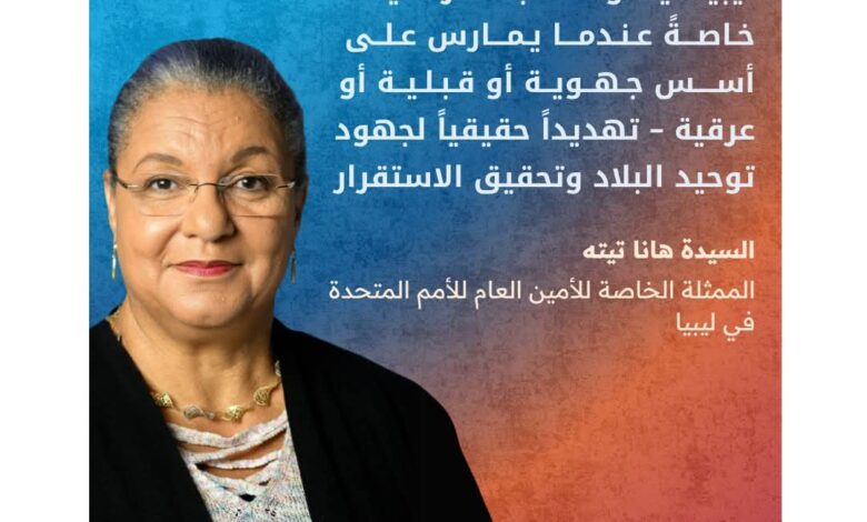 و أكدت المبعوثة الأممية هانا تيتيه، في بيان له، أن “خطاب الكراهية، خصوصًا عندما يُمارس على أسس جهوية أو قبلية أو عرقية، يشكل خطرًا حقيقيًا على جهود توحيد ليبيا، ويقوّض السعي نحو بناء دولة مستقرة وشاملة لكل أبنائها”.