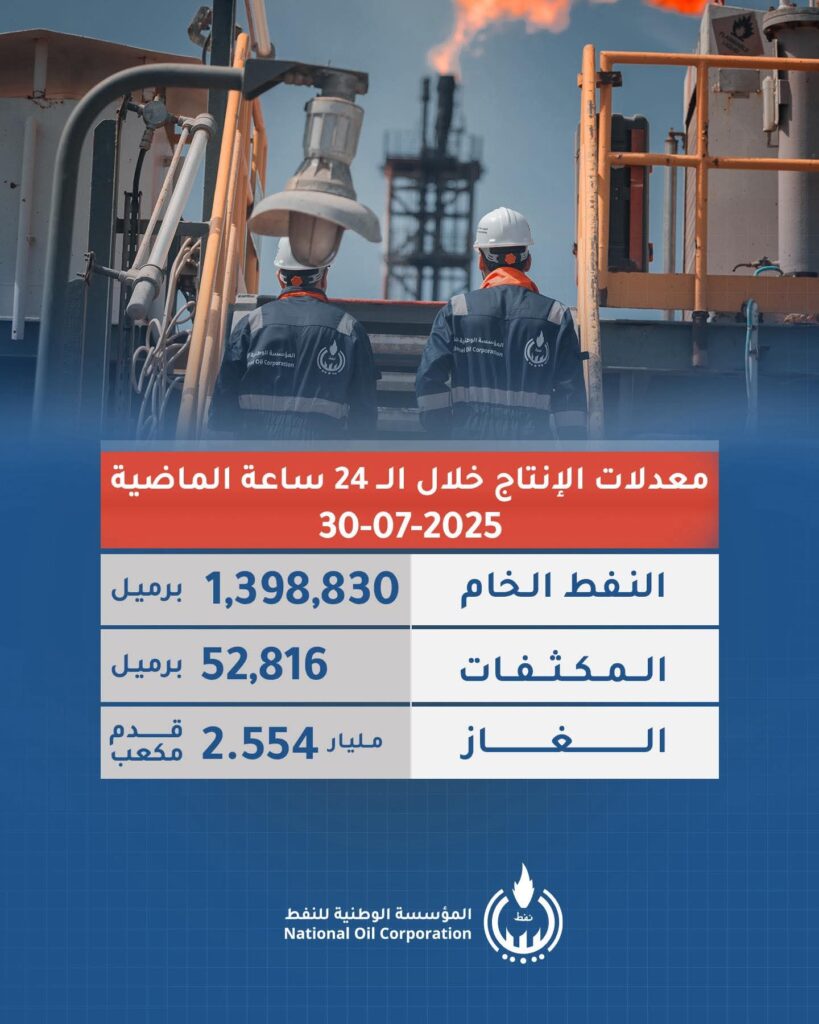 المؤسسة الوطنية للنفط تعلن معدلات الإنتاج خلال 24 ساعة الماضية