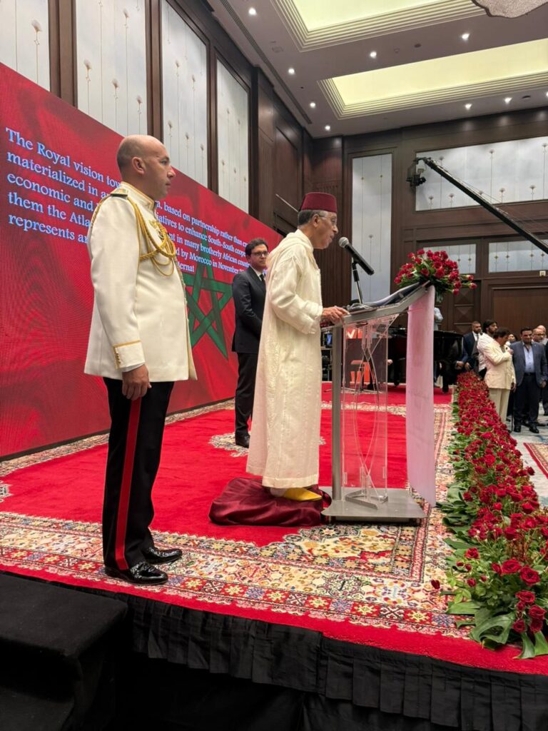 وأضاف السفير أن هذه الذكرى لها مغزى خاصاً وعميقاً. فمنذ اعتلائه العرش في 30 يوليو 1999، قاد الملك محمد السادس، المغرب نحو مرحلة جديدة من الإصلاحات الشاملة والعميقة، شملت كافة مناحي الحياة السياسية، والاقتصادية، والاجتماعية، والثقافية، دشن بها الملك محمد السادس عهداً جديداً اتسم بالانفتاح والديمقراطية، وتعزيز دولة المؤسسات والقانون، والالتزام الراسخ بالعدالة الاجتماعية والمواطنة الفاعلة. هذه الذكرى هي فرصة للتأمل في حصيلة أكثر من ربع قرن من العصرنة والبناء، وهي مسيرة ارتكزت على رؤية استشرافية لجلالة الملك، جعلت من الإنسان المغربي المحور الأساسي لكل أشكال التنمية.