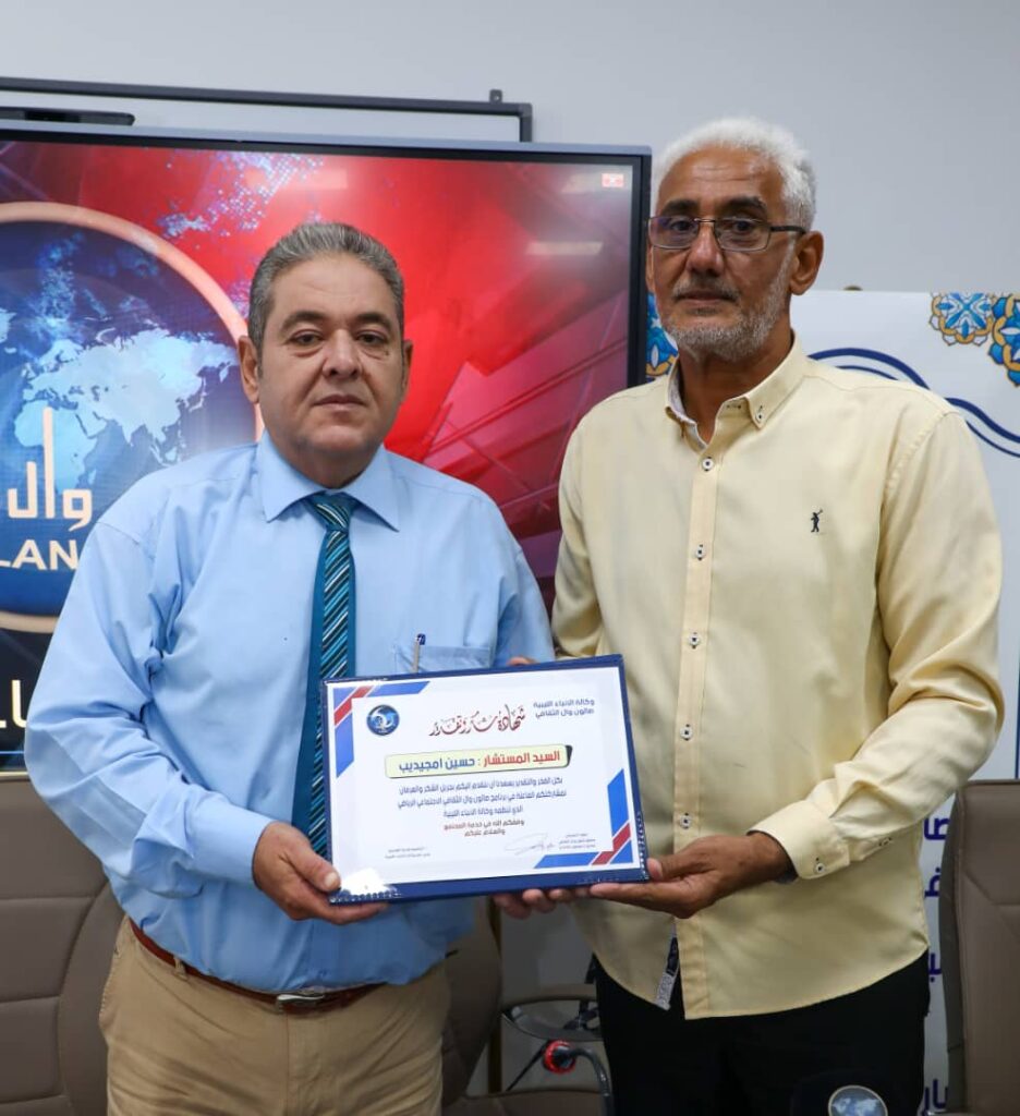 وقد تم في نهاية الصالون تكريم المستشار القانوني حسين امجيديب بدرع وشهادة تقدير نظير مشاركته الفاعلة وإدارته المتميزة لجلسة النقاش.