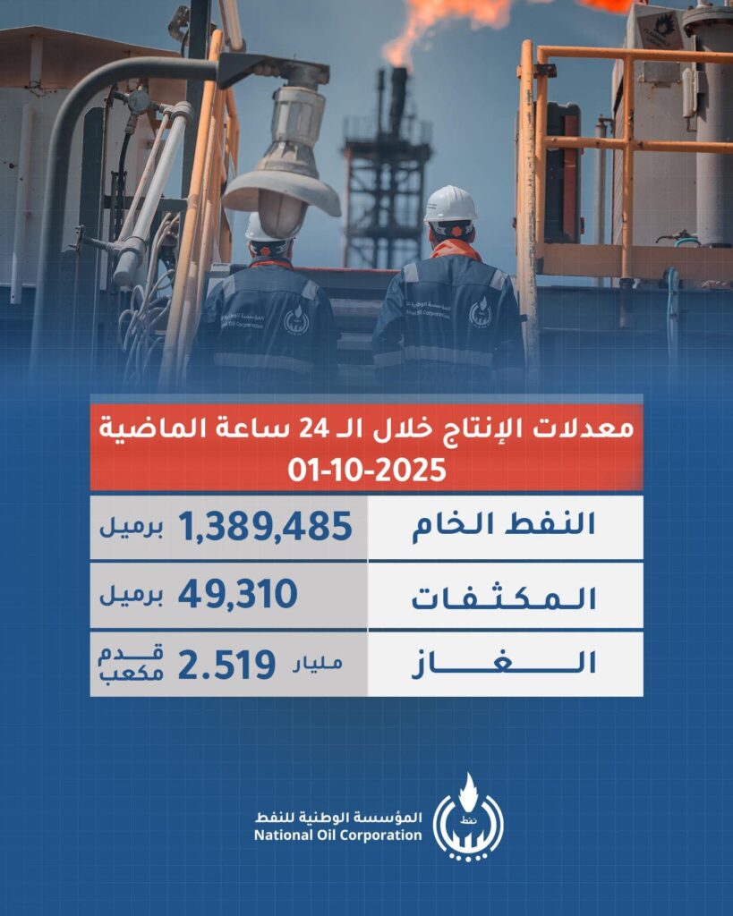 وأكدت المؤسسة أن هذه المعدلات تعكس استقرار نسبيًا في عمليات الإنتاج، مشيرة إلى أن الجهود متواصلة للحفاظ على مستويات الإنتاج وتعزيز قدرات القطاع بما يحقق المصلحة الوطنية ويدعم الاقتصاد الليبي.